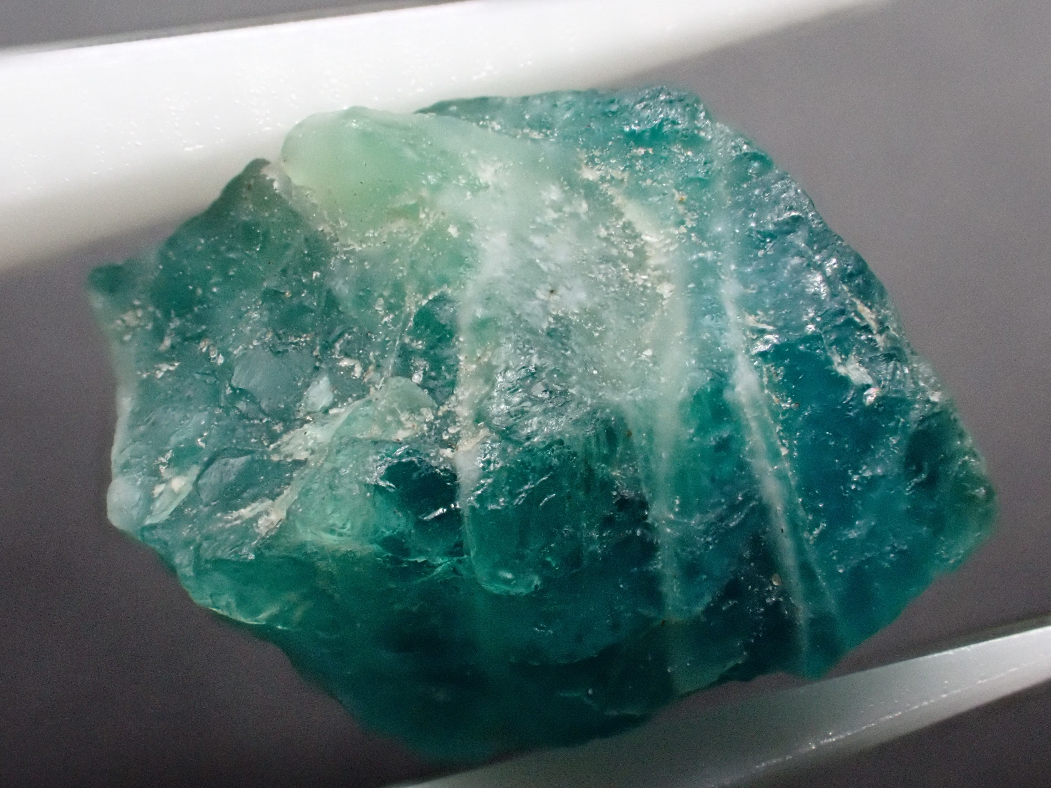 透過も美しいですが、ブラックライトでオレンジ色に蛍光する面白い鉱物です。