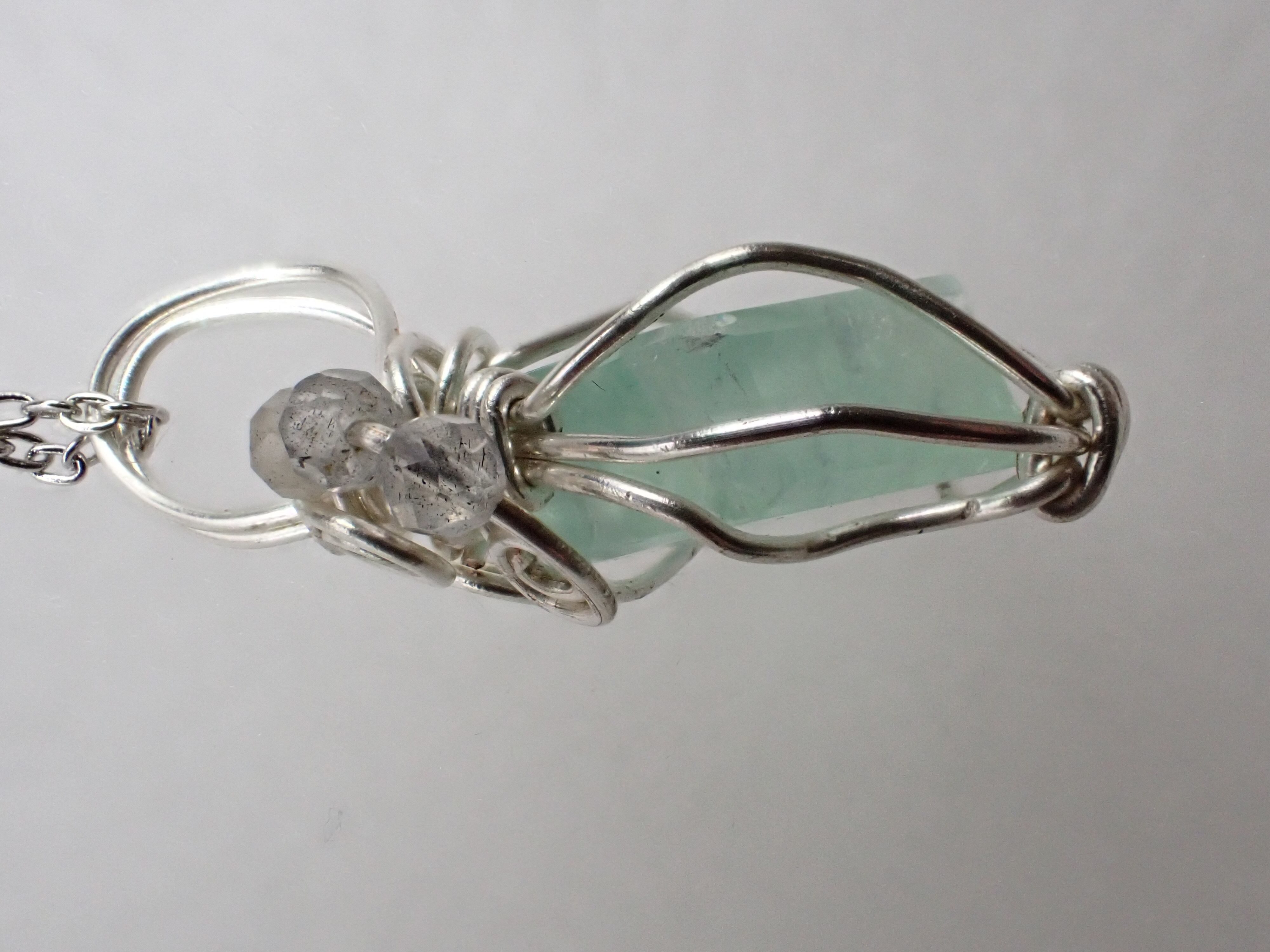 研磨品はフローライト、ビーズはラブラドライトを使用しております。