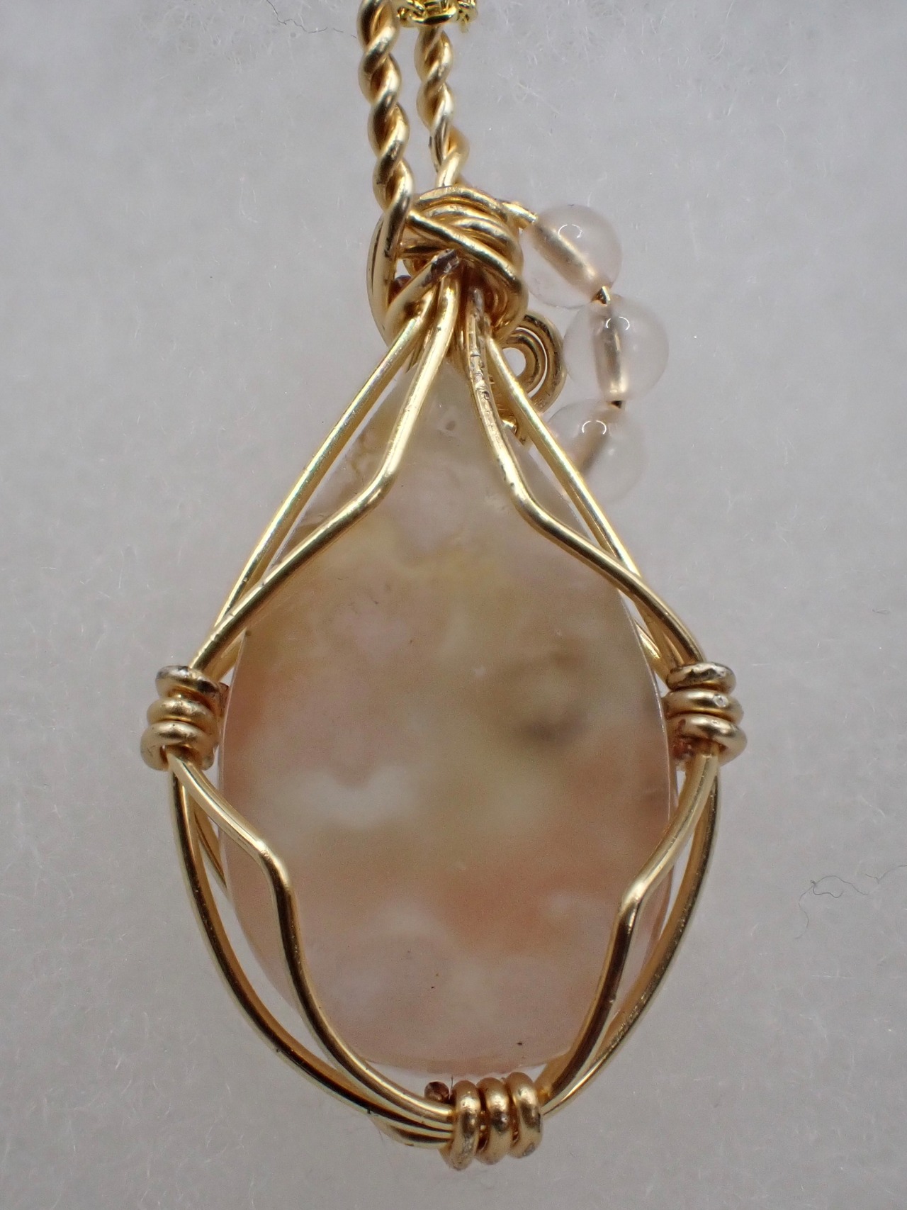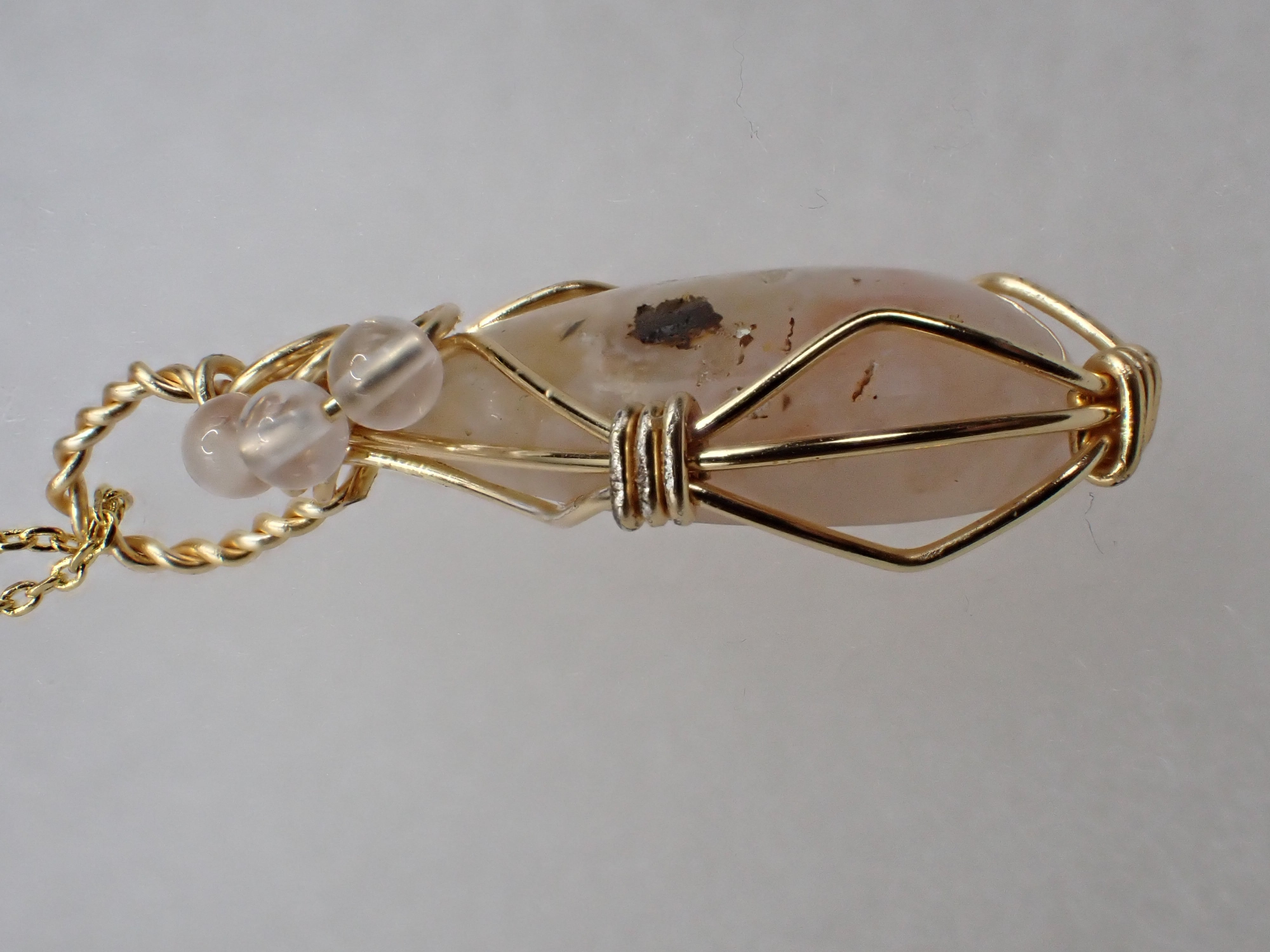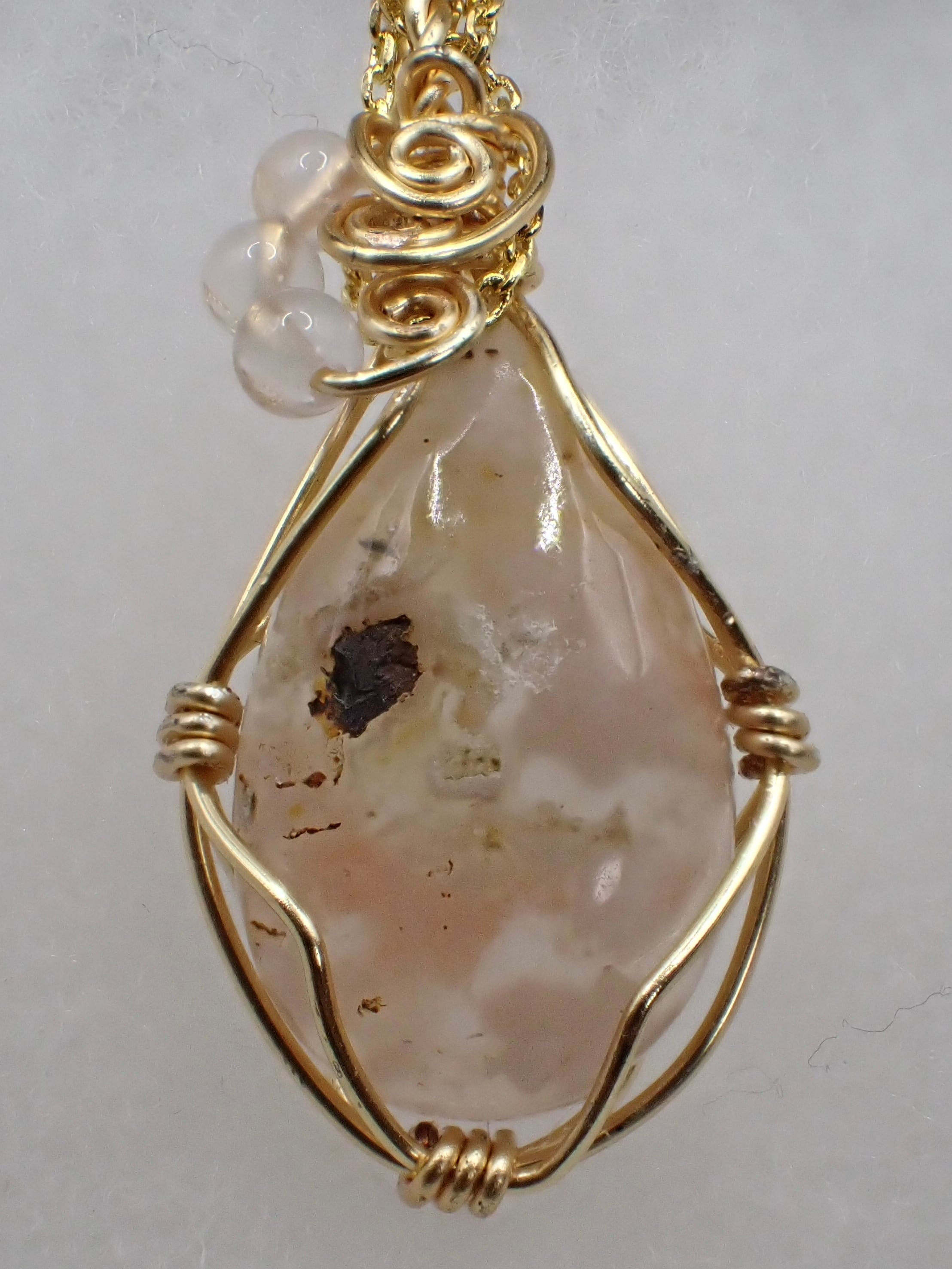 研磨品は桜メノウ、ビーズはローズクォーツを使用しております。