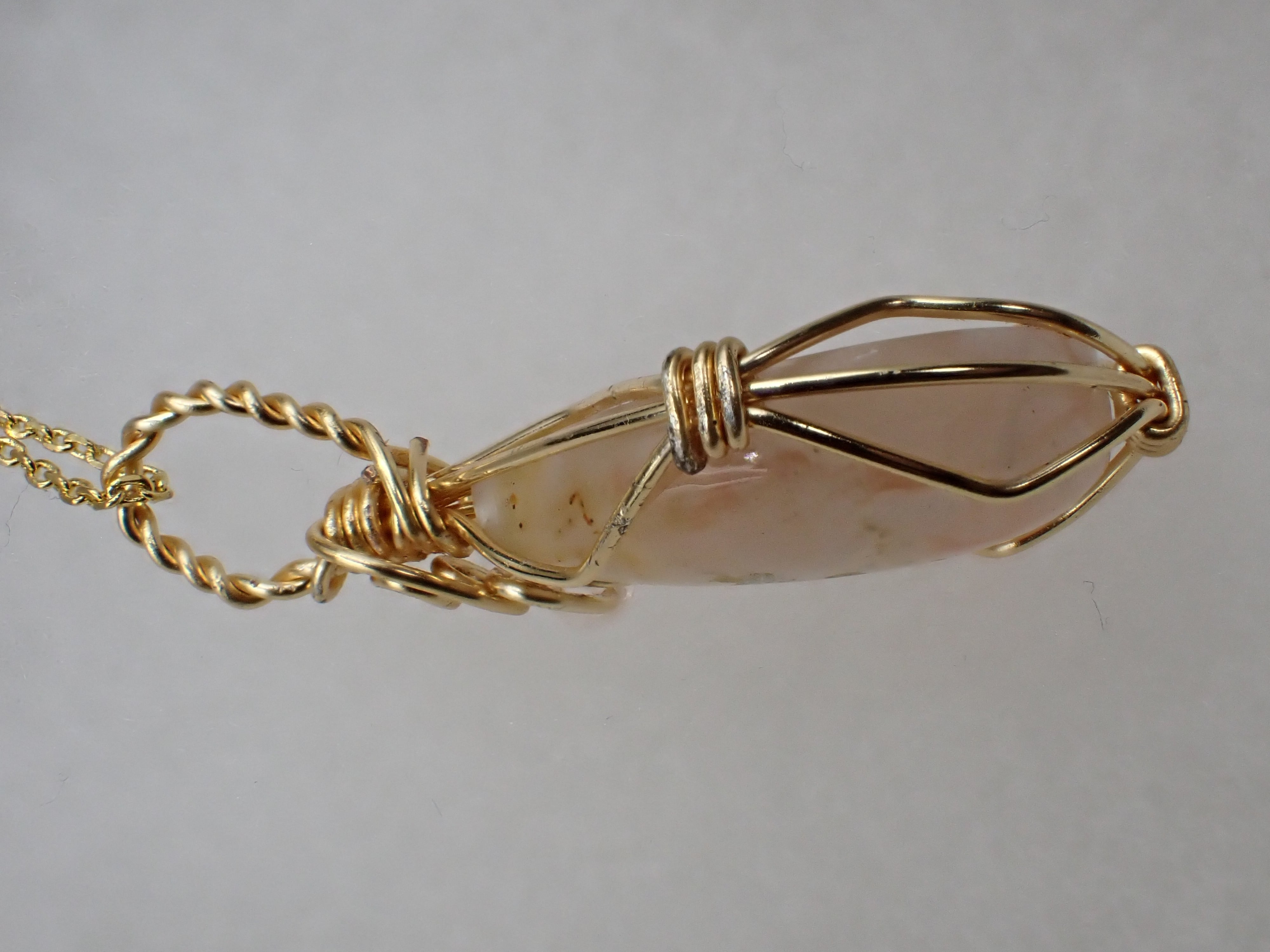 マクラメ・ワイヤーラッピング作家のKleiner Mondさんにヒツジヤの研磨品をネックレスに仕立てていただきました。